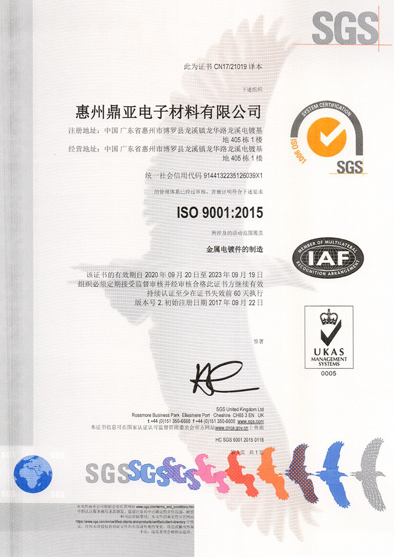 惠州ISO 9001:2015认证证书