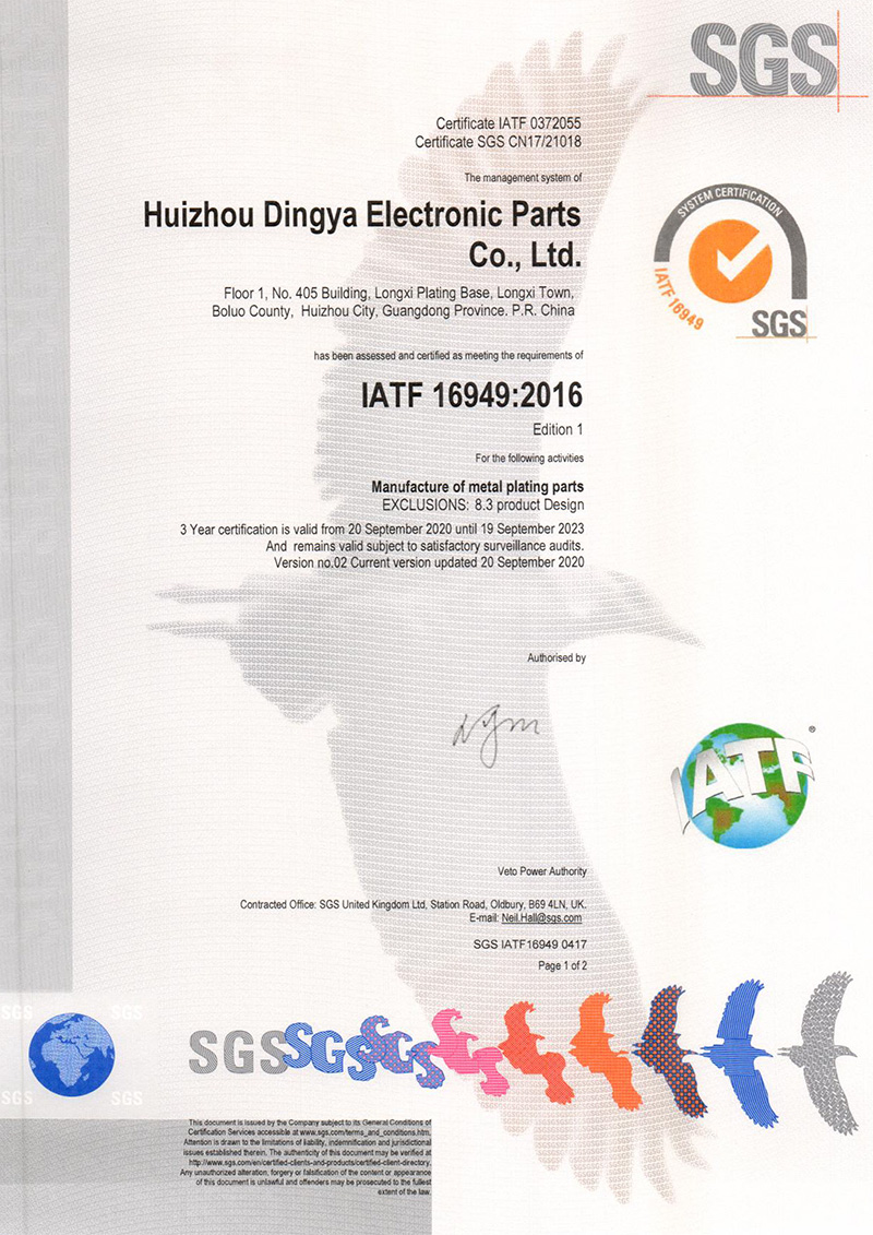 惠州IATF 16949:2016认证证书(英文)